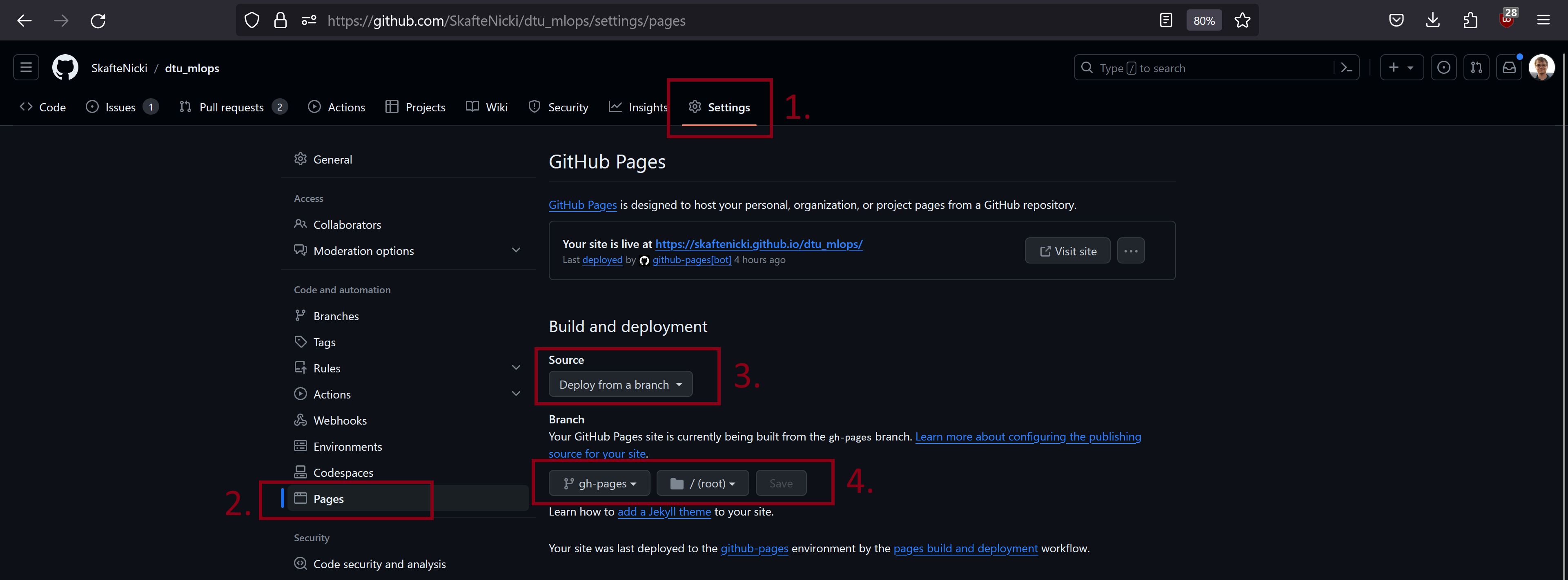 gh-pages. If the action does not succeeds, then figure out what is wrong and fix it! -