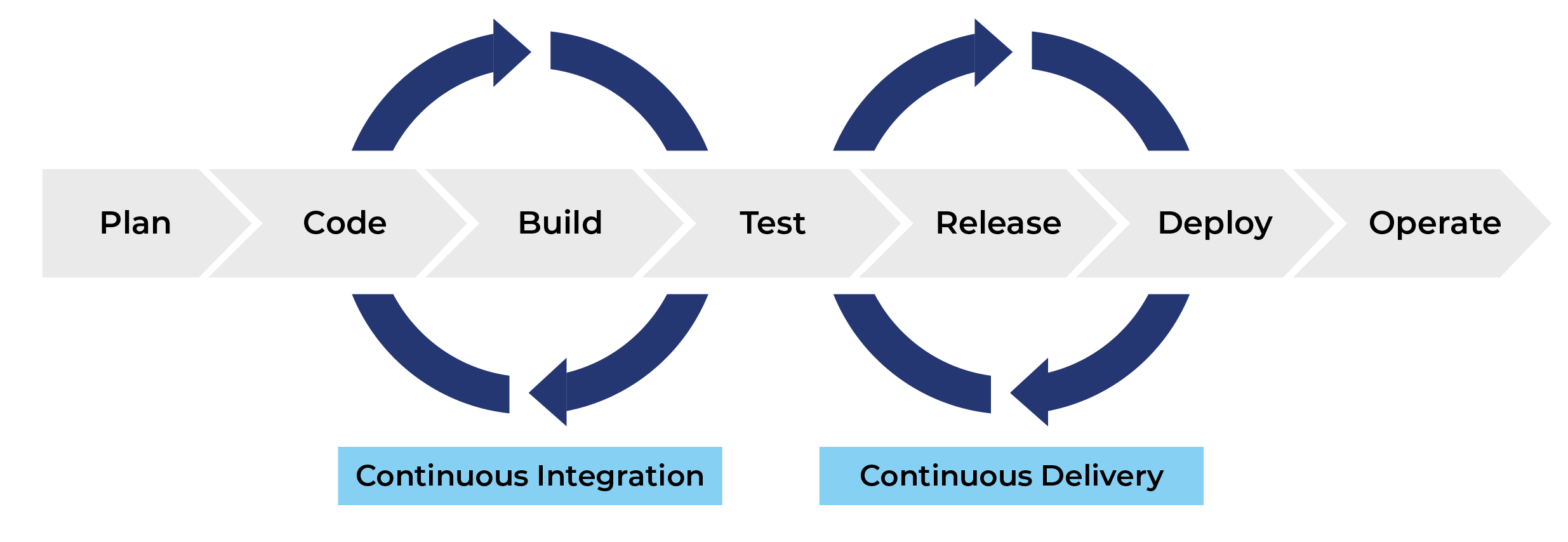 In this session, we are going to focus on continuous integration (CI). As indicated in the image above, continuous integration usually takes care of the first part of the developer pipeline which has to do with the code base, code building and code testing. This is paramount to automatization as we would rather catch bugs at the beginning of our pipeline than at the end.