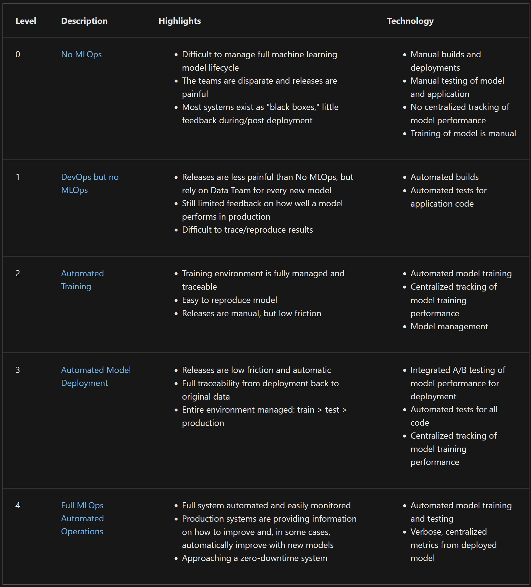 At this level, organizations have started to implement DevOps practices in their machine learning workflows. They have started to use version control and maybe basic continuous integration practices.