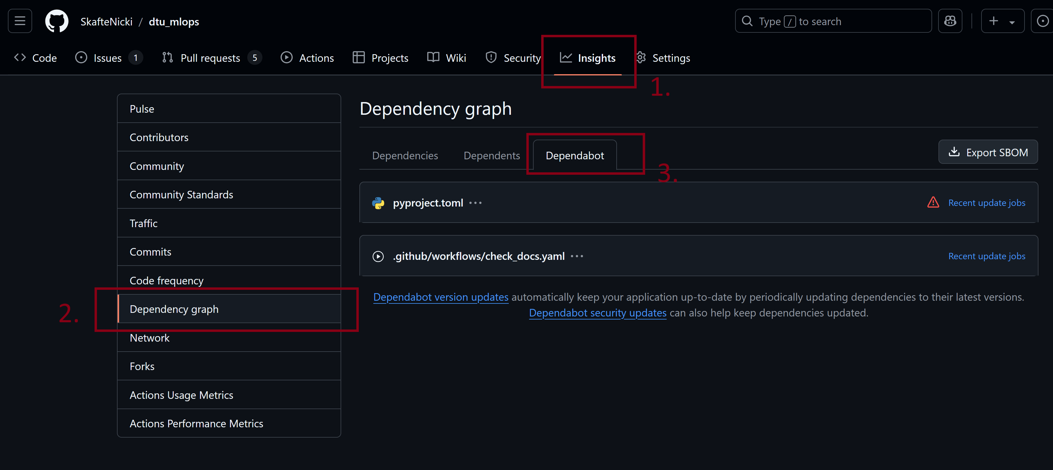 Push the changes to your repository and check that the dependabot is working by going to the
