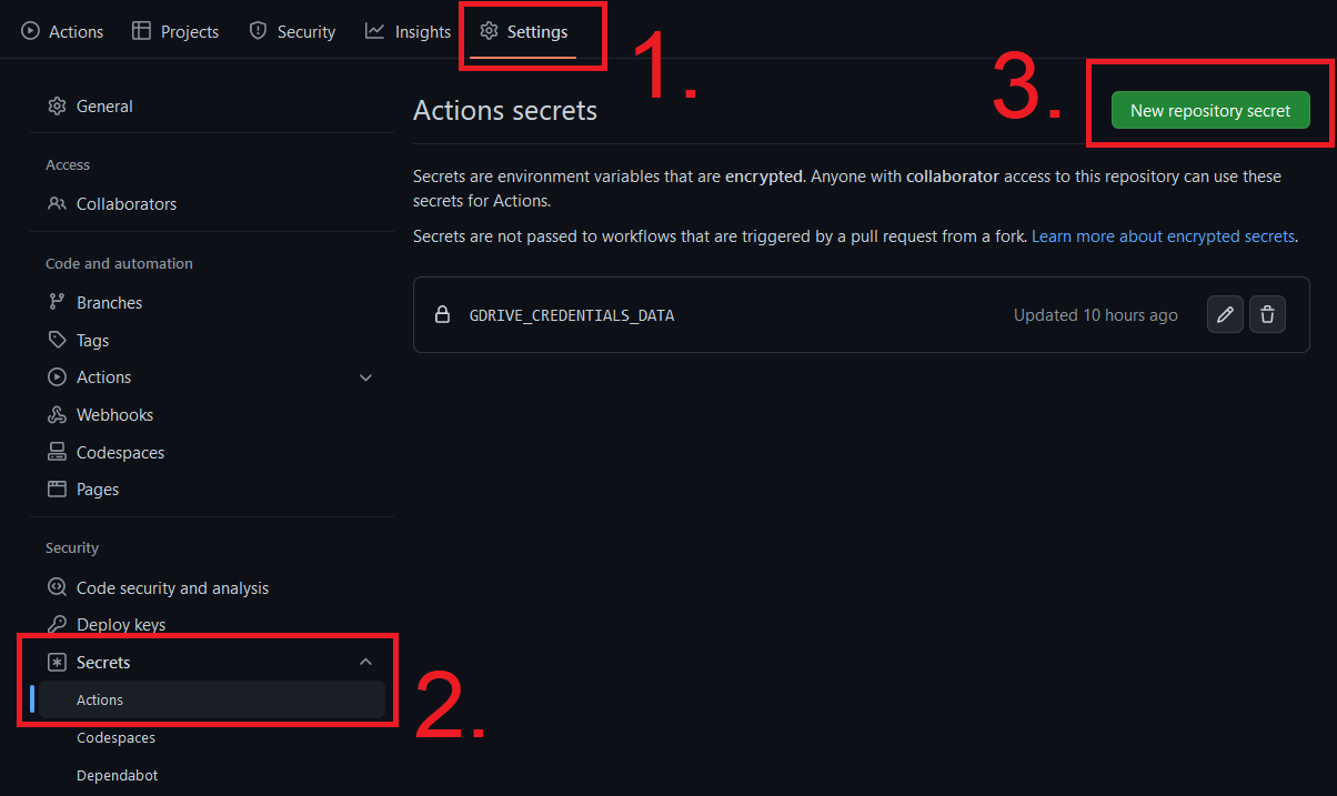 GDRIVE_CREDENTIALS_DATAthat contains the content of the file you found in the previous exercise. -