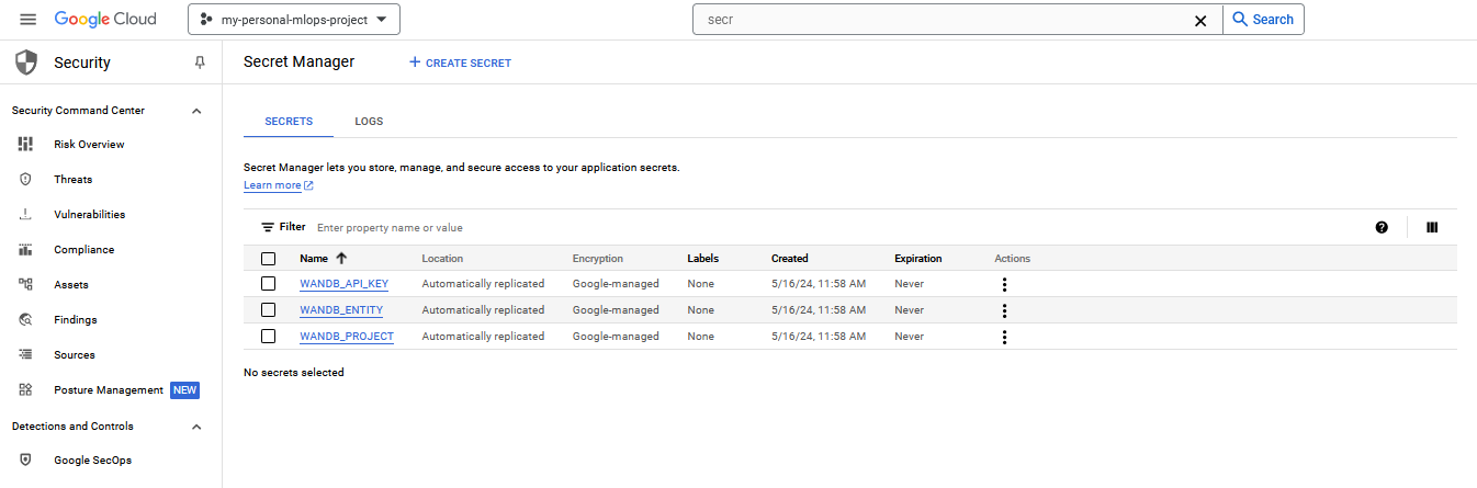 WANDB_API_KEYin the config file, rather we would like to store it in the Secret Manager and inject it right before the job starts. Let's figure out how to do that.-