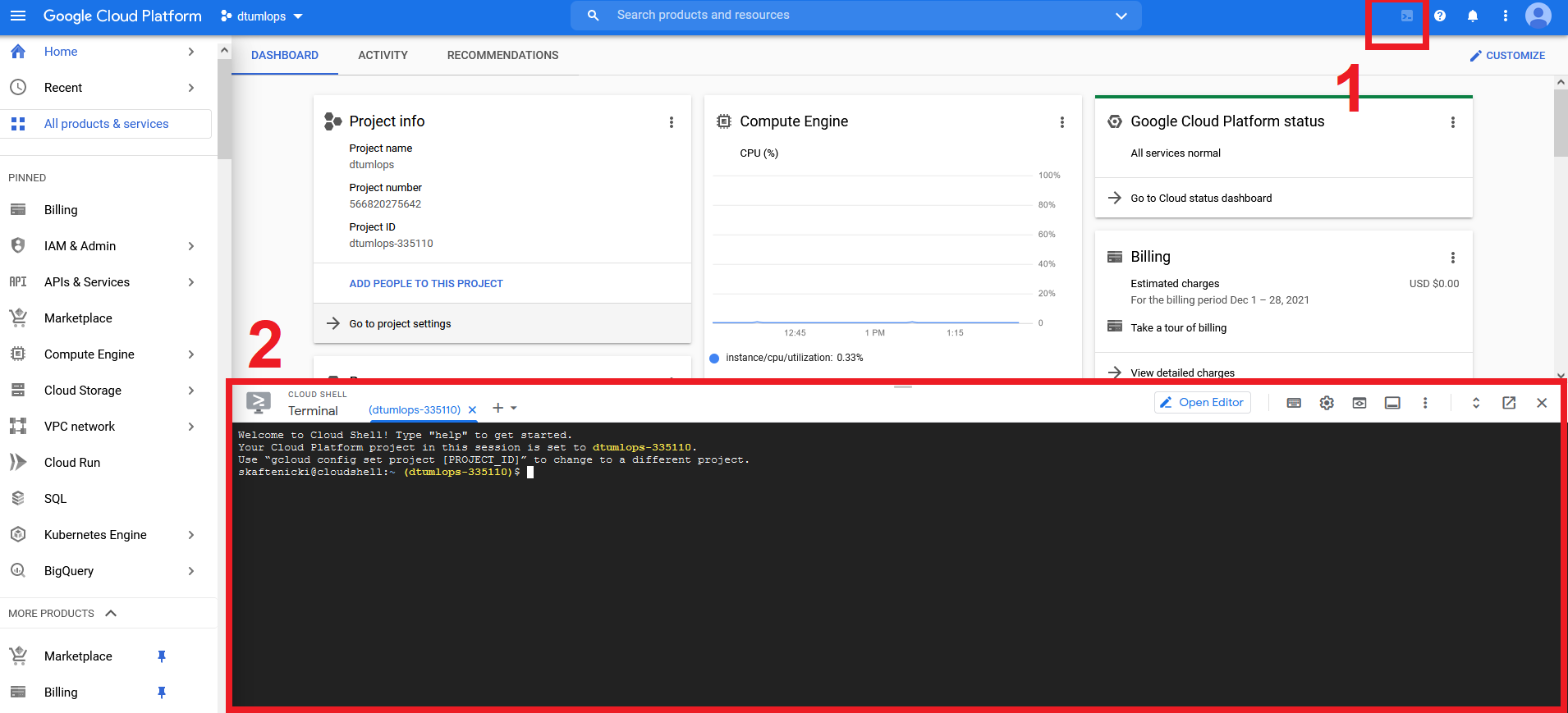 gcloudin the command line.Find the