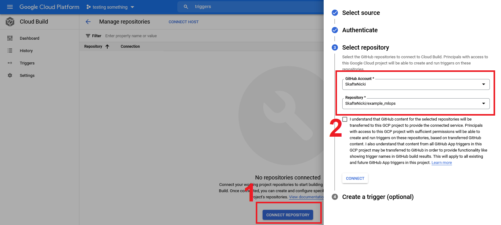 To activate the trigger, push some code to the chosen repository.