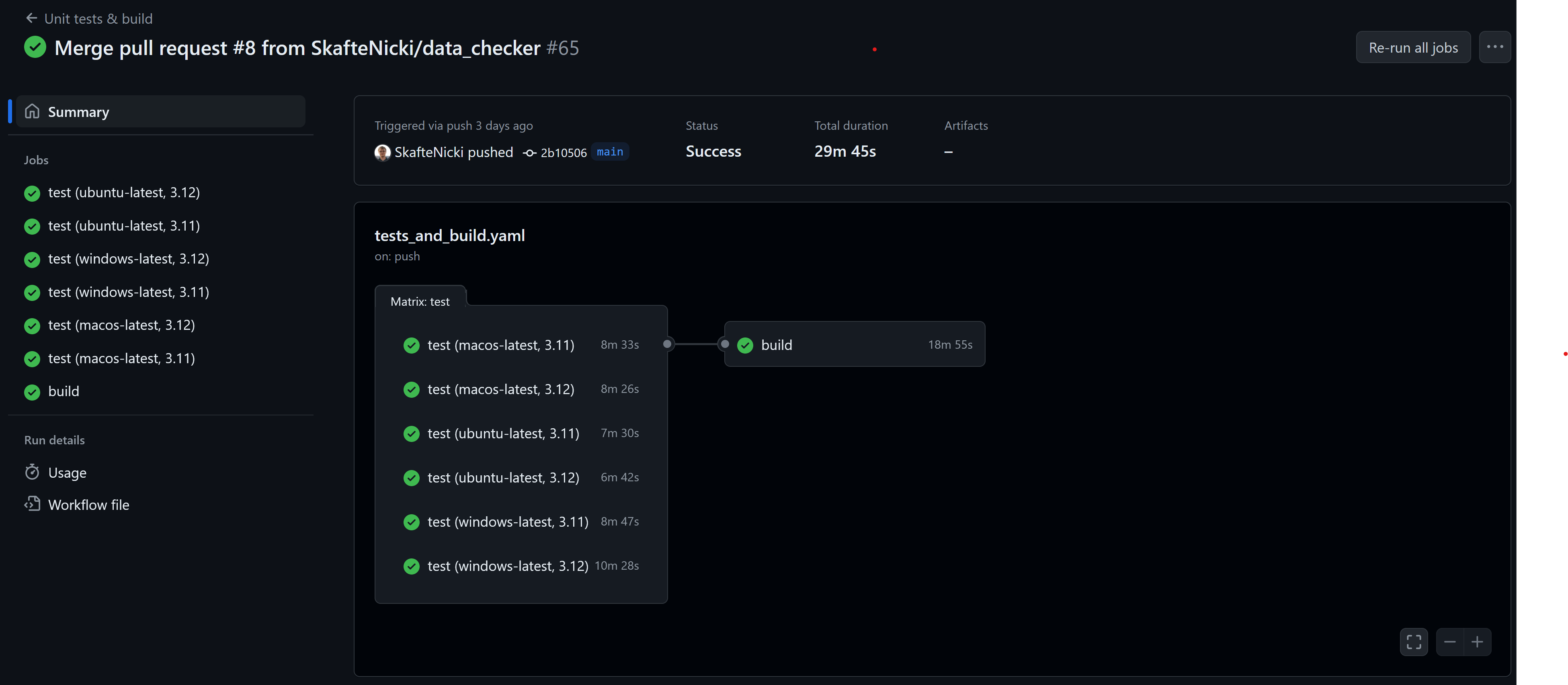 (Optional) Instead of using the built-in trigger in GCP, another way to activate the build-on code changes is to integrate with GitHub Actions. This has the benefit that we can make the build process depend on other steps in the pipeline. For example, in the image below we have conditioned the build to only run if tests are passing on all operating systems. Lets try to implement this.
