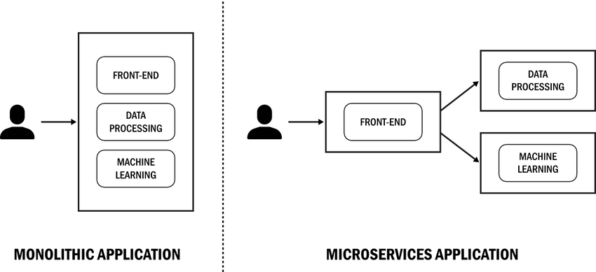 Another point of splitting our application into a frontend and a backend has to do with scalability. If we have a lot of users interacting with our application, we might want to scale only the backend and not the frontend, because that is the part that will be running our heavy machine learning model. In general dividing an application into smaller pieces is the pattern that is used in microservice architectures.