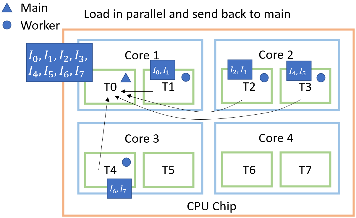 any shuffling. In this step, the master thread then distributes the list of requested data points ([0,1,2,3,4,5,6,7])